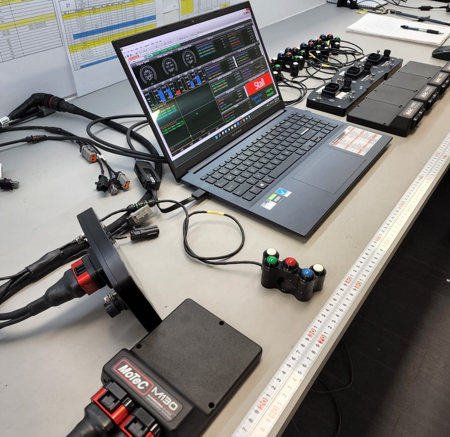 Located in Croydon South, Melbourne, Australia our workshop is specifically designed to offer full service for all aspects of motorsport electronics from a basic dash or data logger installation to a complete bepsoke loom for a complex professional level race vehicle. All design, manufacture, installation and configuration is done in house. Our facility is walking distance from MoTeC head office making it a breeze for parts supply and technical collaboration. Custom built work benches, professional tooling and well organised parts stocking and storage allow us to produce high quality race winning wiring solutions for your vehicle completely in house.